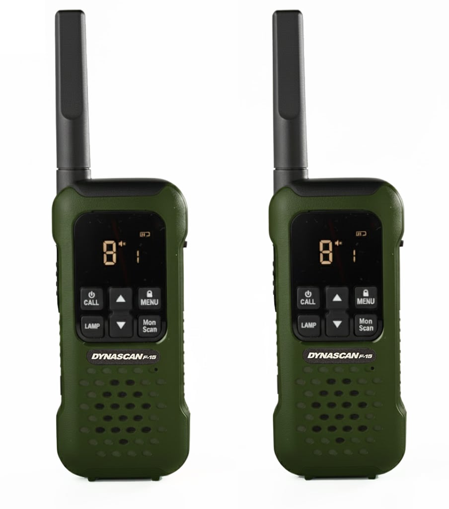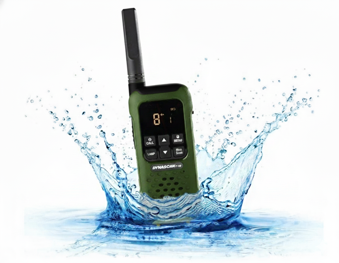 Rugged and powerful, the F-15 from Dynascan will keep you in touch even in the most extreme environments. These walkie-talkies not only float in water, also can be submerged up to 1 meter for 30 minutes.