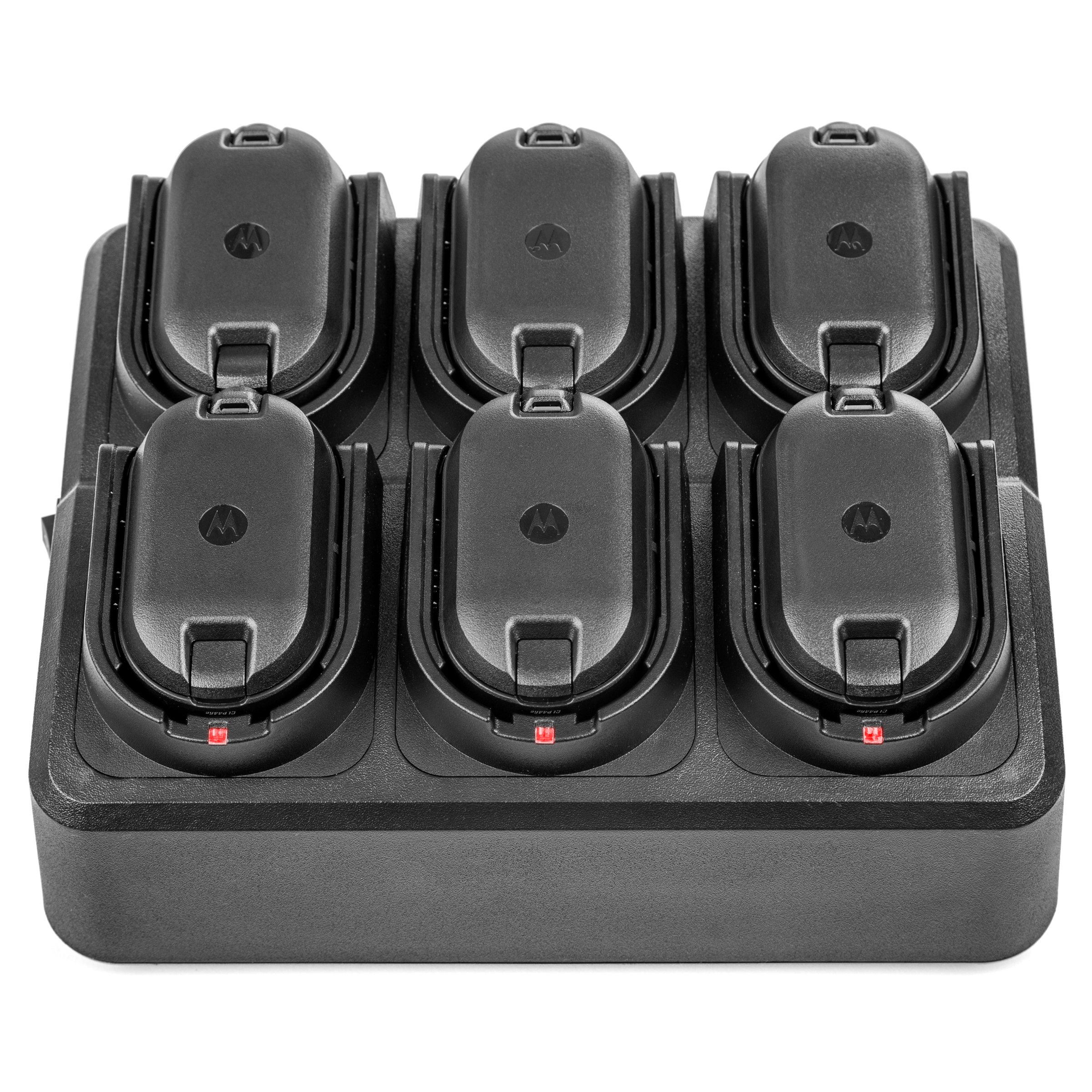 The JETFON MULTI-CLPe multi-charger is designed to simultaneously charge six MOTOROLA CLPe walkie-talkies, reducing space and excess cabling.