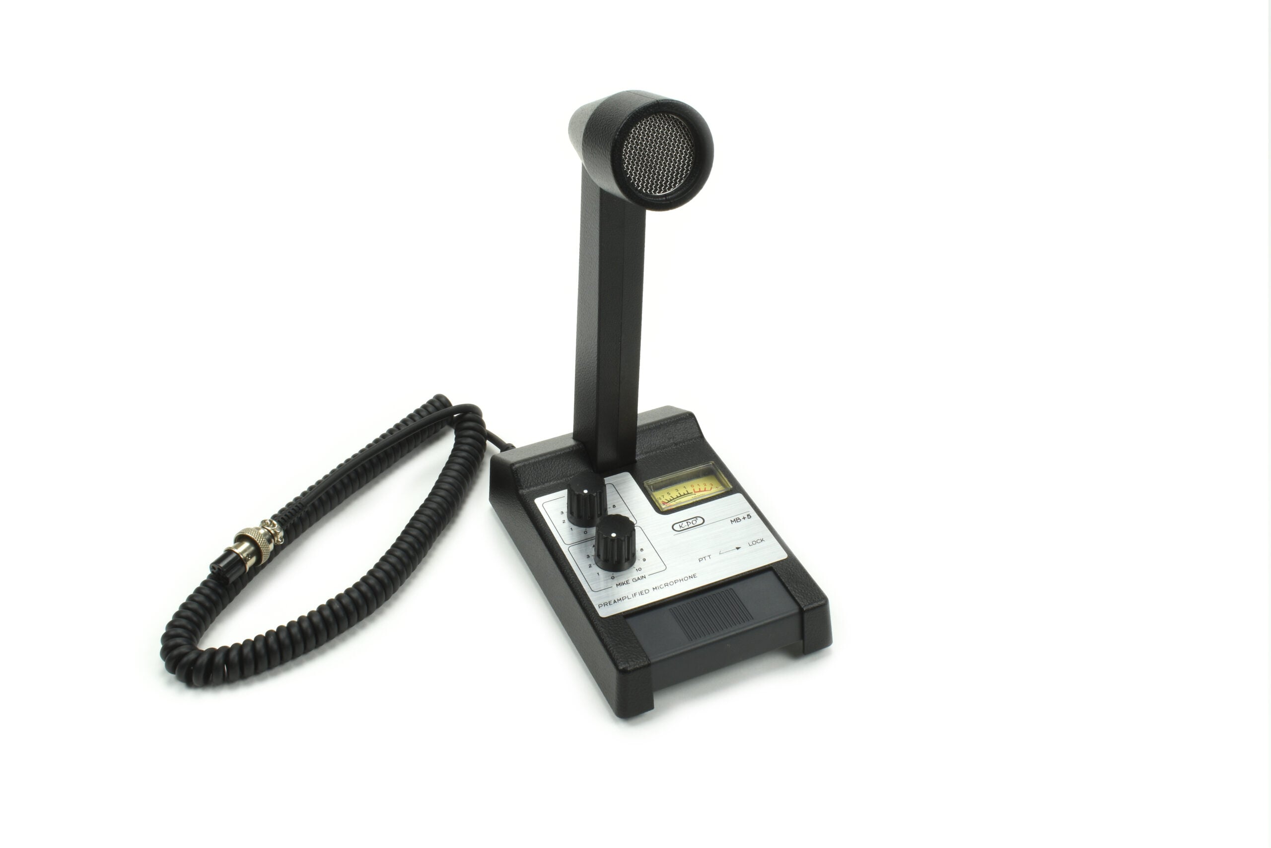 The K-PO MB+5 P4 is a robust desk microphone designed for CB and amateur radio use. It features rotary controls for precise adjustment of volume and tone, allowing you to set the audio to your personal preference.The microphone connector is pre-wired for use with most standard 4-pin CB radios, for example Super Star 3900, Jopix , Jetfon, Uniden, President and Stabo radios.