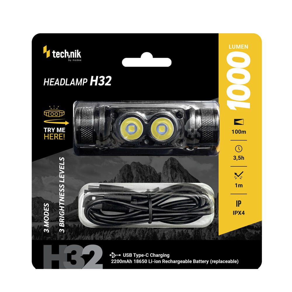 The H32 uses OSRAM P9 LED technology, providing powerful, efficient light output. With its 1000-lumen brightness, it easily illuminates your surroundings, including dark trails or hard-to-reach areas. The lamp includes 3 brightness levels and a strobe mode for emergency signalling.
