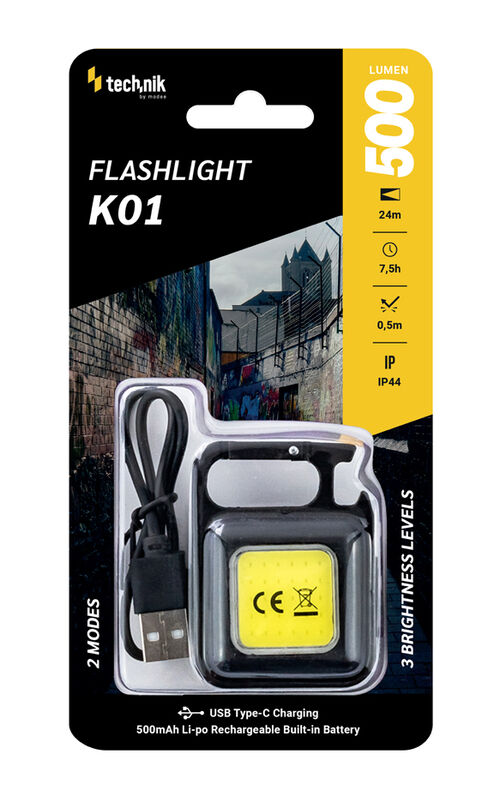 The lamp is equipped with a COB LED light source, capable of delivering a maximum luminous flux of 500 lumens. This isn’t the only available mode: it also includes a lower intensity mode, a warm white mode, and an indicator light function, all pre-programmed. Its beam range is approximately 5 meters, ideal for DIY projects or tasks performed at arm’s length.