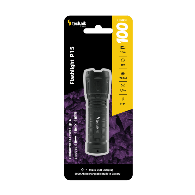 Technik P15 flashlight, designed to be carried in your pocket, is an ideal tool for solving everyday situations. Thanks to its compact size, it can even be attached to a keychain, as the rear of the lamp features a dedicated attachment point. Because its material is color-pigmented, you don’t have to worry about surface wear or scratches. Measuring only 88 mm in length with a 29 mm head diameter, and weighing just 52 grams, it is lightweight and comfortable to carry in any pocket.