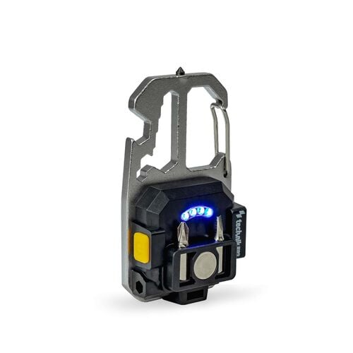 También incorpora un imán potente en la parte trasera, que permite fijar la lámpara de forma segura en superficies metálicas. El marco está diseñado para poder sujetarse fácilmente con cualquier mosquetón.