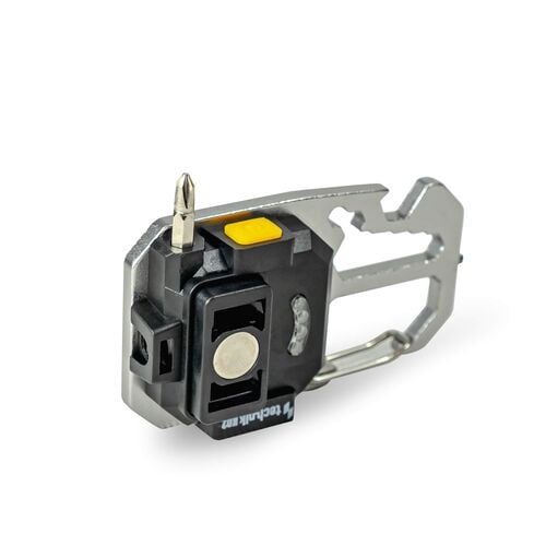 Además, en la parte trasera se incluyen una punta plana y una punta Phillips, que pueden colocarse en el orificio situado debajo del botón de encendido, permitiendo apretar o aflojar pequeños tornillos utilizando la propia lámpara.