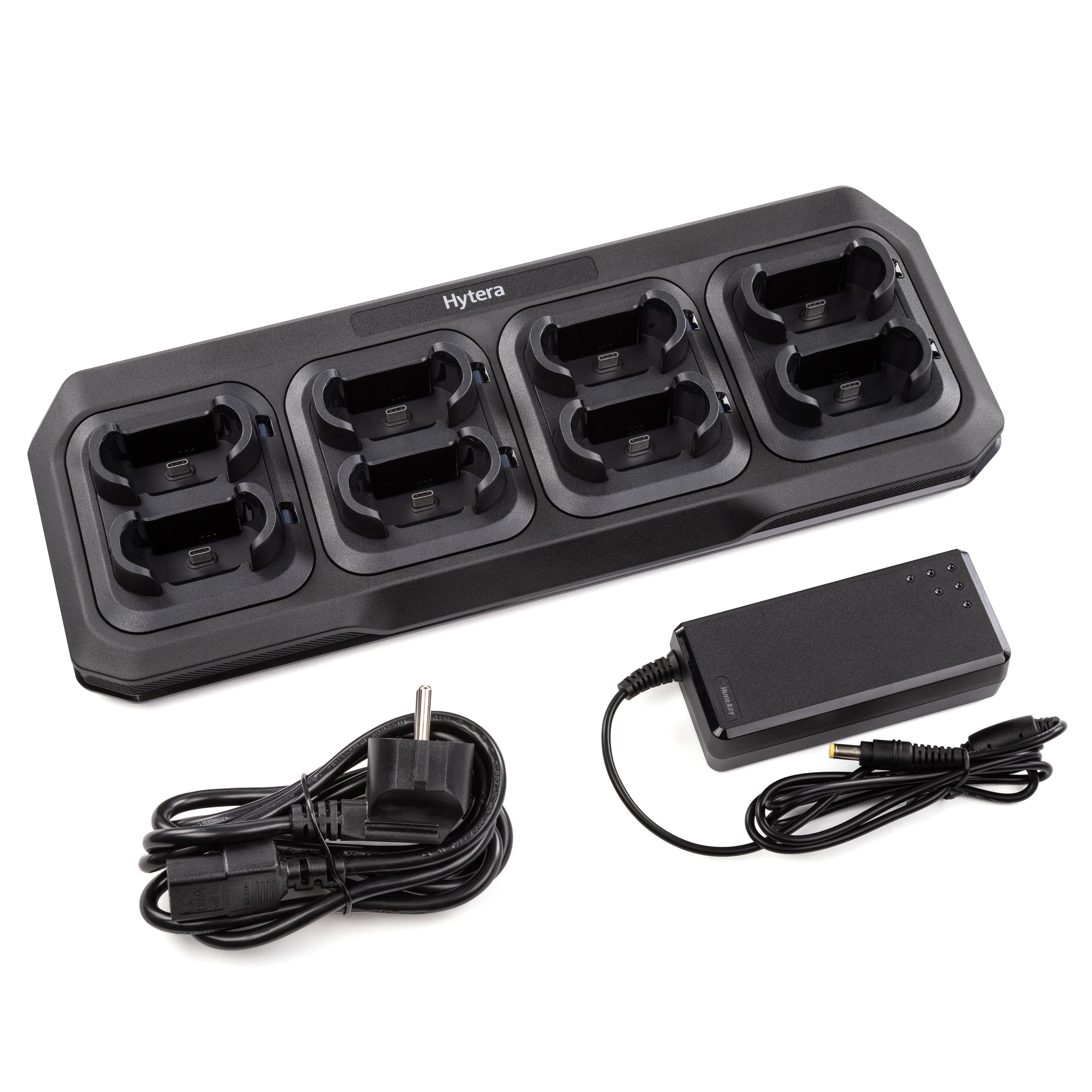 El cargador multiple Hytera CM31 permite cargar ocho walkies Hytera S1 o S1 Pro simultáneamente.