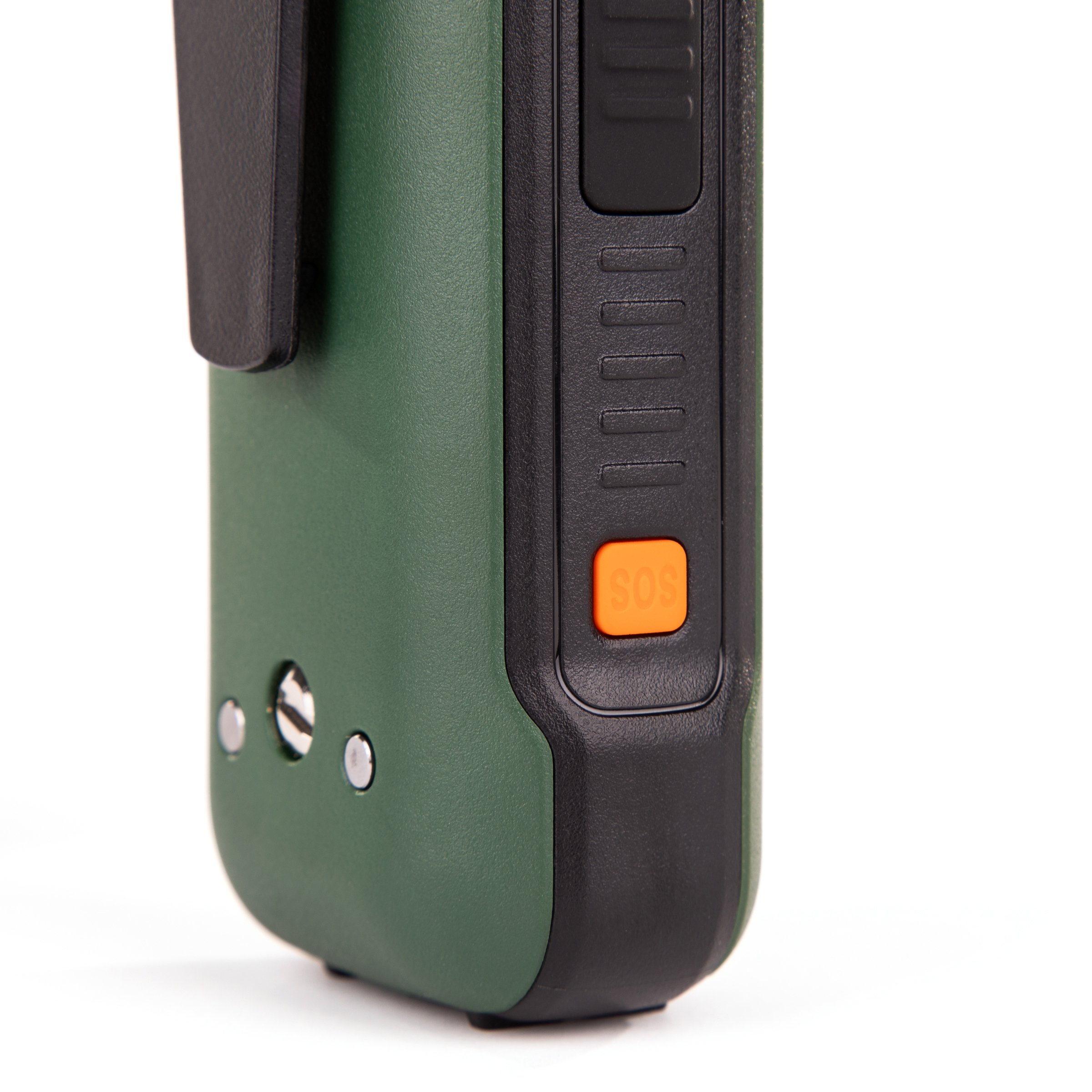 con el agua. Resulta muy útil para los profesionales que trabajan de noche o para realizar excursiones nocturnas. Además, dispone de un botón de emergencia en el lateral bien visible que, en caso de alerta, activa una llamada en modo manos libres, a la vez que da un aviso sonoro para informar a tu grupo que necesitas ayuda.