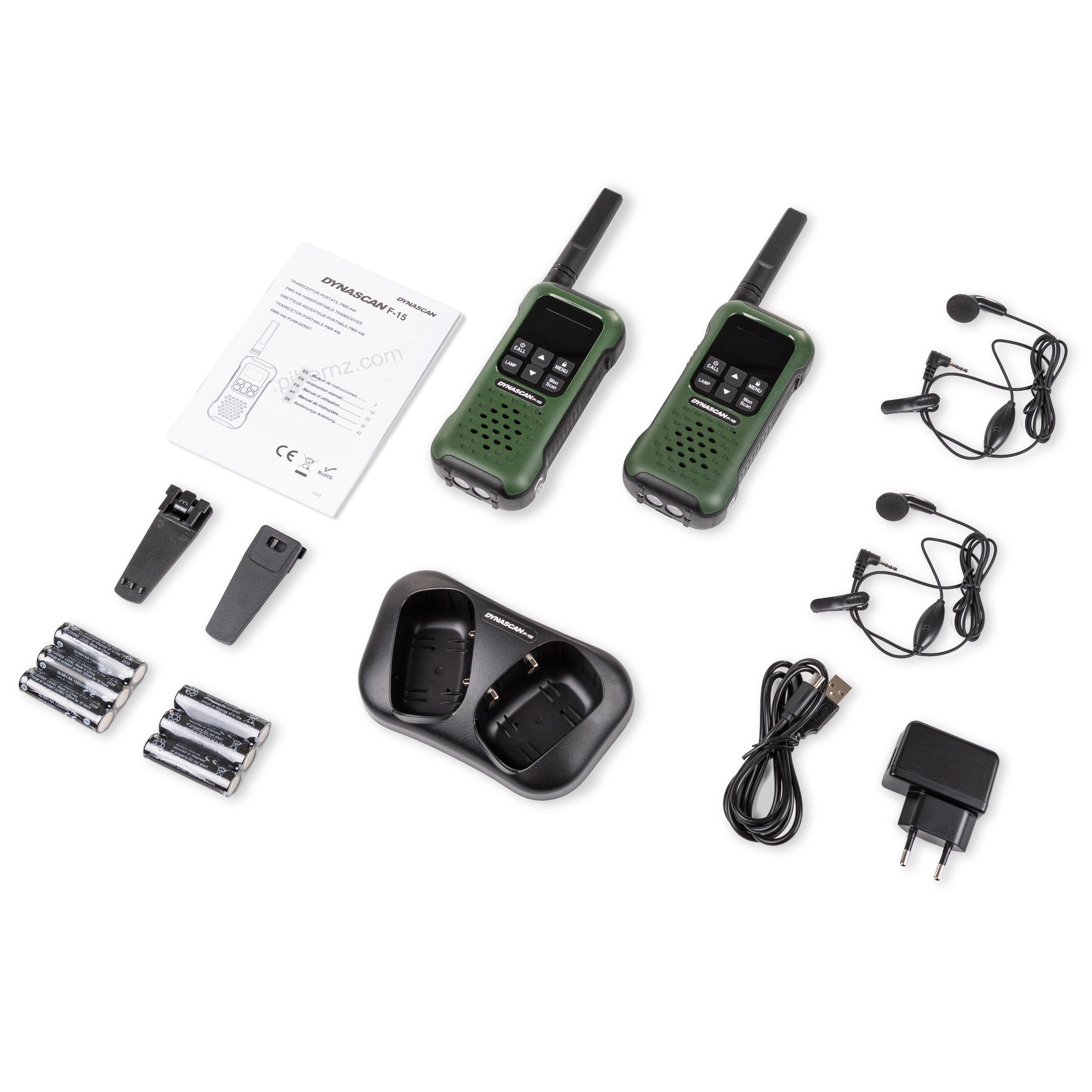 Los Dynascan F-15 son una pareja Walkies Talkies PMR-446 de uso libre sin licencia, completamente impermeables y sumergibles, lo que los hacen muy apropiados tanto para el uso en exteriores como para interiores: comunicaciones en grandes superficies, hostelería, comercio, eventos deportivos… Así como actividades de montaña, escalada, senderismo, campings.